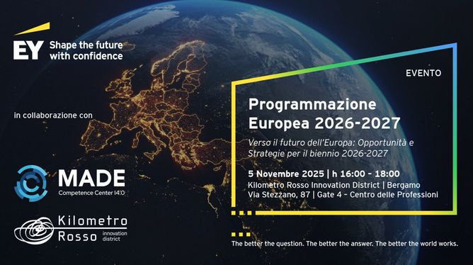 L’evento, gratuito, è organizzato da EY, in collaborazione con MADE Competence Center e Kilometro Rosso, ed è rivolto alle imprese e centri di ricerca interessati a comprendere le linee di finanziamento più rilevanti, gli strumenti e i criteri per accedere ai fondi europei.
